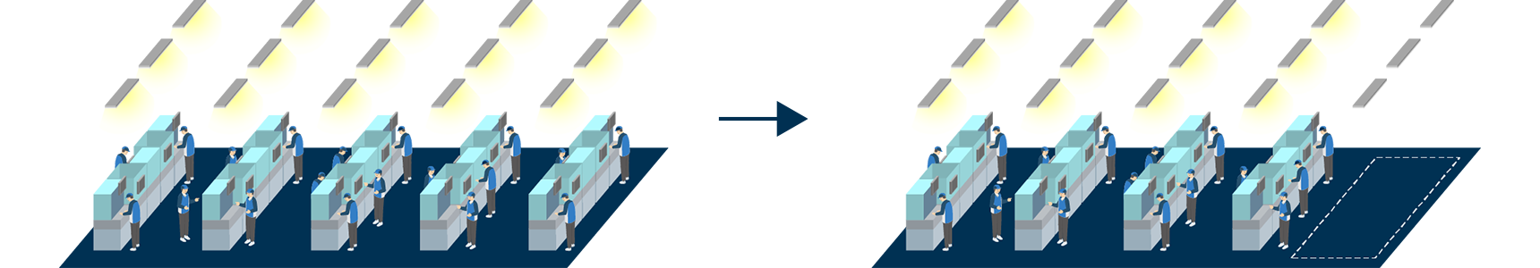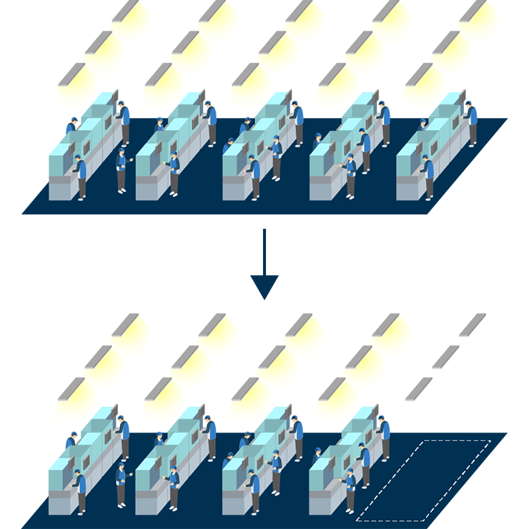 An initiative to cut operating time helped increase production volume to reduce the number of production lines but producing the same number of products as before. This freed up manufacturing floor space and that in turn reduced energy used for lighting and air conditioning, delivering greater energy productivity.