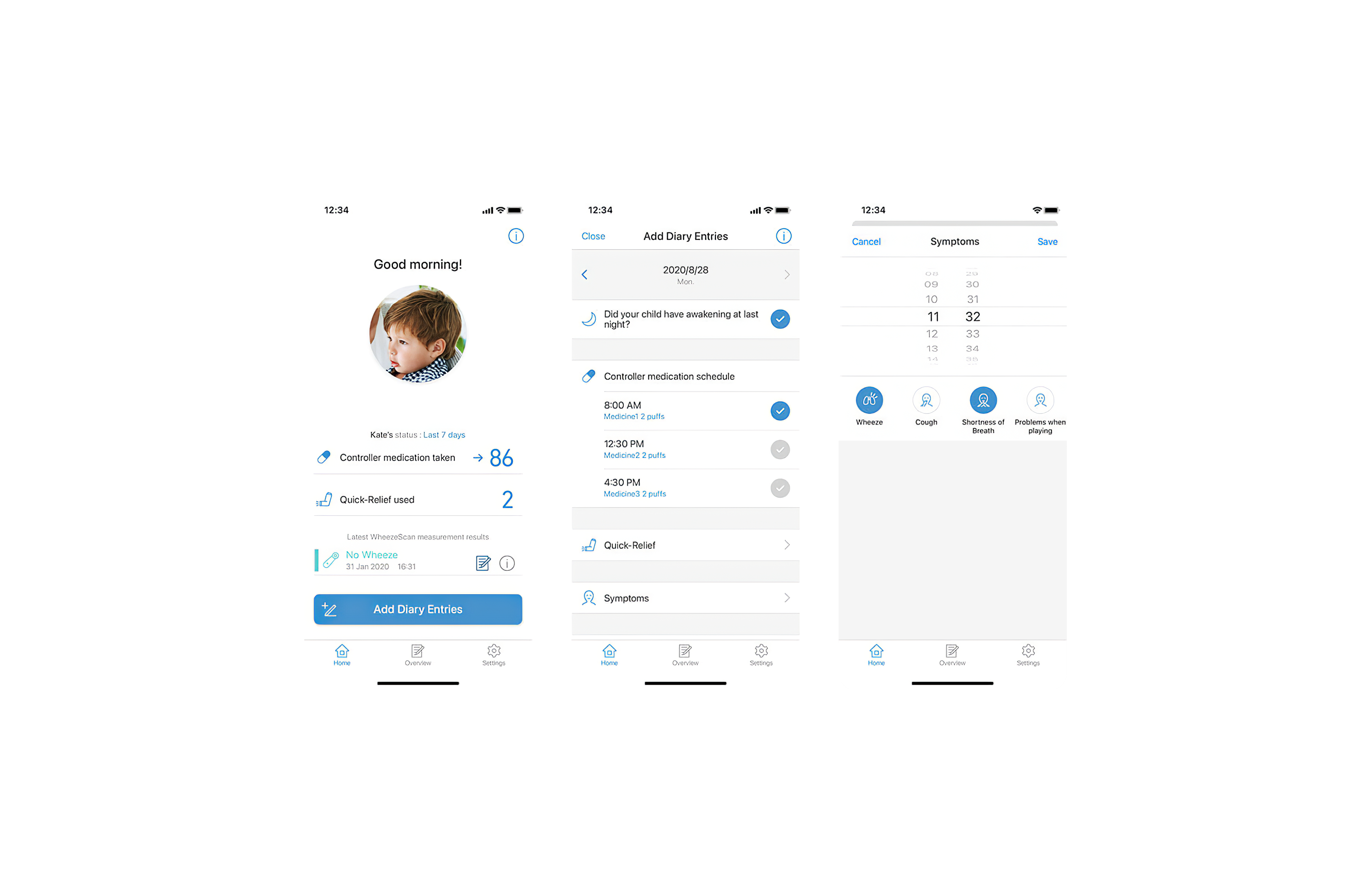 Kimura: When you use WheezeScan in the morning and evening when asthmatic symptoms are most likely, or while away from home, you can check for signs of an asthma attack. This achieves our aim for patients to take medications correctly. Asthma Diary shows the big picture with a daily log and a history to show the status over time. At the same time, the app also collects medication history data, helping patients manage asthma care.