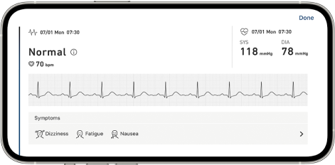 Takes an ECG with a regular blood pressure check for comprehensive cardiac insight