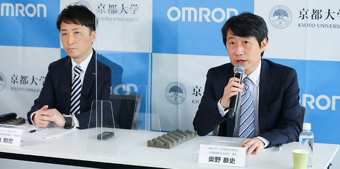 Right: Yasushi Okuno, Ph.D., Prof., Department of Biomedical Data Intelligence, Graduate School of Medicine, Kyoto University / Left: Takehiro Hamaguchi, General Manager, Product Innovation Department, OMRON Healthcare