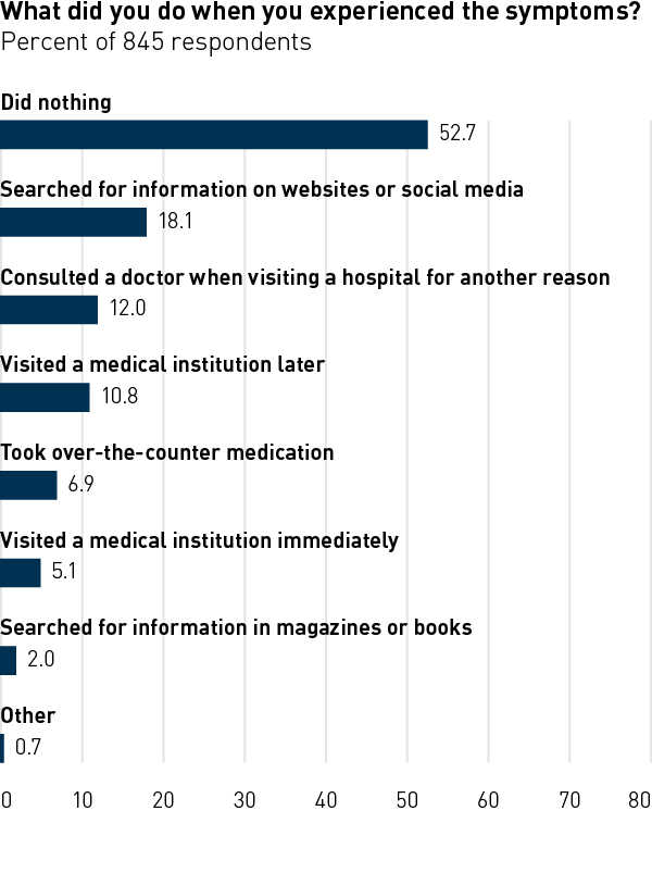 Approximately one in two women did not take any action despite experiencing such symptoms.